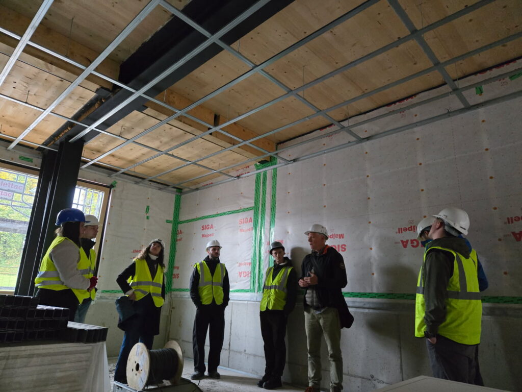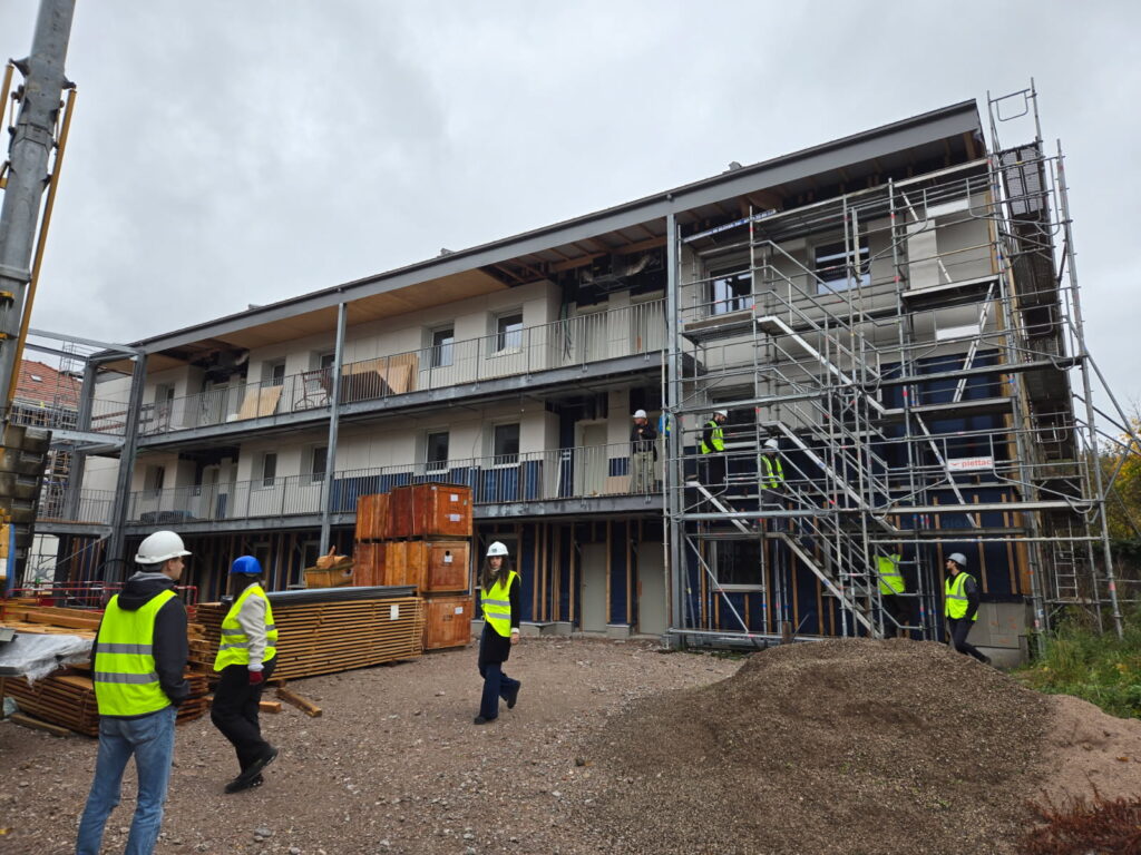 Accompagnés par leur enseignant Jérôme Robin, les étudiants ont découvert plusieurs réalisations remarquables. Parmi elles, un chantier mené par le bailleur social Vosgelis et l’architecte Alexandre Scalabrino, consacré à la reconstruction de 24 logements adaptés aux seniors et à l’aménagement d’une agence Vosgelis en rez-de-chaussée. Cette opération, emblématique par son approche de réemploi, résulte de quatre années de recherche et d’expérimentation. Elle a notamment fait l’objet d’une thèse soutenue par Odran Lemaitre, ancien étudiant ingénieur de l’ENSTIB.