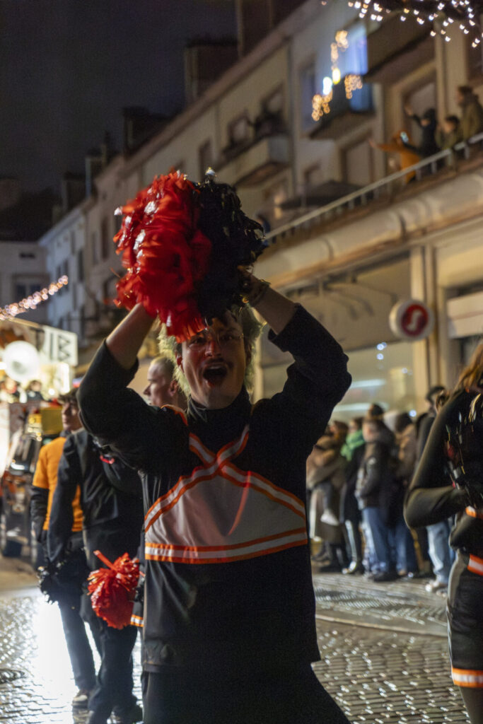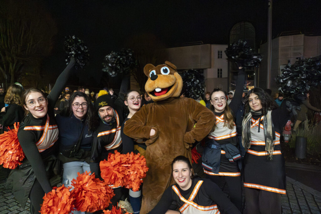 La première tient à l’ambiance exceptionnelle qui s’en dégage. Sur le char, la fanfare emblématique de l’école, le Lapachol Orchestra, fait vibrer la foule avec son répertoire festif, joué avec une énergie communicative. Devant et derrière le char, les PomPoms de Pin assurent le spectacle, entourées des étudiants qui défilent dans une atmosphère chaleureuse et joyeuse.