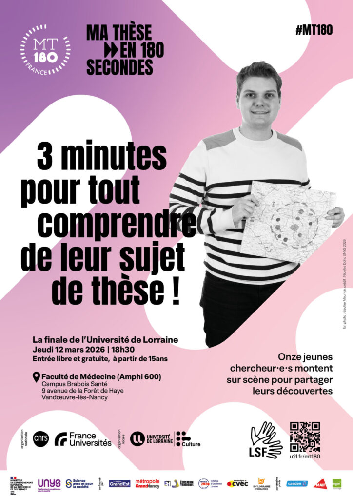 Jeudi 12 mars à 18h30, l’Amphi 600 de la Faculté de médecine, sur le campus Brabois Santé, accueillera la finale de l’Université de Lorraine du concours Ma thèse en 180 secondes. Parmi les doctorants sélectionnés figure Gautier Maurice, ingénieur de l’ENSTIB diplômé de la promotion 2024.